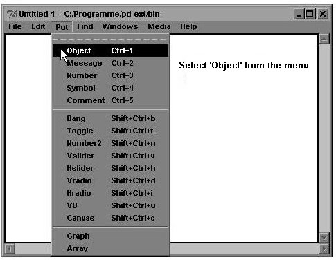 A new window opens. Add an object box under Put Object, or with the keypad, using the listed key command: Ctrl-1 (this is for Windows; other platforms may have different key commands).