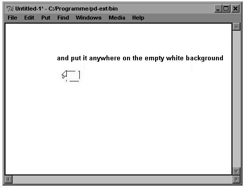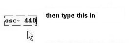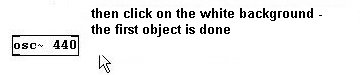 Then click somewhere on the blank white surface in the new window to decouple the mouse from the object box. Type this into the box: "osc~ 440".