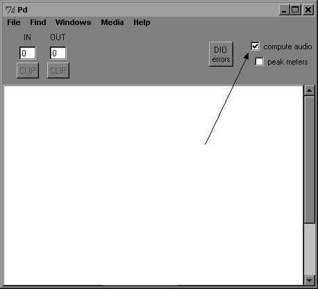 (The "compute audio" function allows you to program in Pd without generating sound. This can save the computer much unnecessary processing power — though this is probably a non-issue with most computers these days.)
