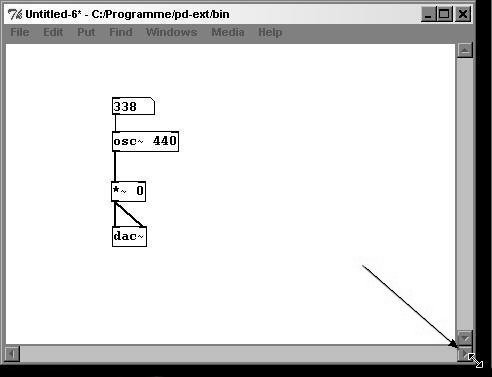 (The sign "~" means "tilde"; you'll need to use this often in Pd.)