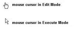 There are two modes: Edit mode and execute mode (you switch between them with Ctrl-E or under Edit Edit mode). You program all the parts of a patch in edit mode and start all operations and sounds in execute mode.