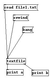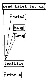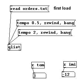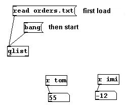 A practical expansion to "textfile" is "qlist". This can be used to send chronologically ordered messages with a text file to "receive" objects. The file "orders.txt" has these contents: