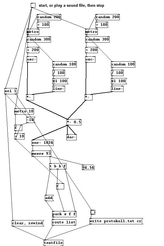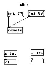 Instead of automatic processes, we can also write proper "scores" for a Pd patch. A simple example would be the use of many "send" commands, as described in 2.2.4.1.3: