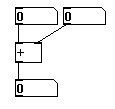 Geben wir nun in die rechte obere Number-Box die Zahl 4 ein (im Execute-Mode einmal in die Number-Box klicken, Zahl eintippen, Enter drücken) und in die linke obere Box die Zahl 5. Nun erscheint auf der unteren Box die Zahl 9, also die Summe von 4 und 5. Das „+“-Objekt hat also zwei Inlets, in die wir Zahlen eingeben, und einen Outlet, in dem das Ergebnis der Arbeit des Objekts, die in der Addition besteht, erscheint.