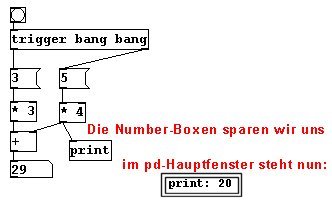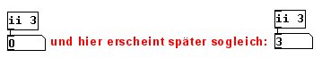 Man kann auch eine Zahl direkt in den linken Eingang schicken, dann kommt sie gleich unten wieder heraus (und wird für den weiteren Abruf (Bang) gespeichert).