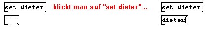 Man beachte: Pd macht in Message-Boxen automatisch nach einem Semikolon einen Zeilenwechsel. Wenn wir also Folgendes schreiben: