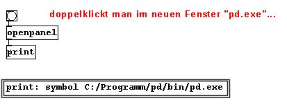 (Ist ein Patch noch nicht gespeichert, geht Pd (unter Windows) vom Pfad pd/bin/ aus.)