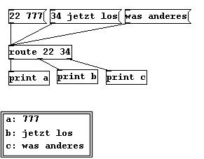 Ein Objekt, das verschiedene Datentypen sortieren kann, ist „route“. Es kann sowohl Typen (Zahl, Symbol, Liste, Bang) zuweisen ...