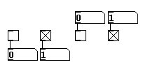 „select“ (meist abgekürzt: „sel“): Als Input eine Zahl, als Output links ein Bang, wenn die eingehende Zahl mit dem Argument übereinstimmt. Alle anderen eingehenden Zahlen werden rechts unten ausgegeben.