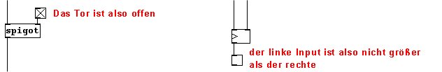 „>“: Ist der linke Input größer als das Argument bzw. der rechte Input, kommt als Output 1, ansonsten 0.
