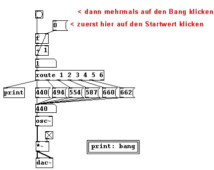Oft wird bei Pd ein Zähler (engl. „counter“) gebraucht, der von einem Startwert aus in ganzen Zahlen hochzählt. Dies sieht dann so aus: