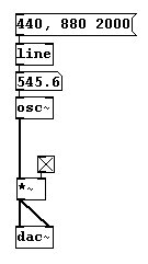 Hier wird wieder deutlich: Für Pd gibt es zunächst nur Rechenoperationen mit Zahlen. Ein Crescendo ist ebenso eine Zahlenreihe wie ein Glissando. Man könnte auch sagen: Ein Crescendo ist ein Glissando der Lautstärke.