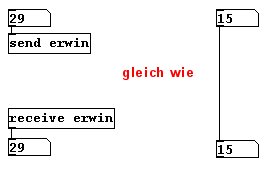 Um nicht alle Boxen immer mit ‚Kabeln’ verbinden zu müssen, gibt es die Möglichkeit, etwas zu „senden“ und zu „empfangen“. Dies erfolgt mit den Objekten „send“ und „receive“.