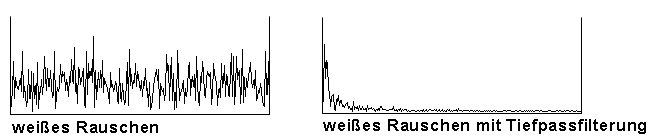 Das Rauschen, das alle Frequenzen enthält, nennt man analog zum Licht „weißes Rauschen“: Das normale, weiße Licht enthält alle Lichtfrequenzen, während zum Beispiel rotes oder blaues Licht durch Filtervorsätze entsteht.