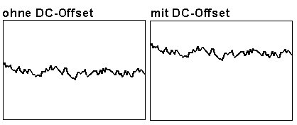 Bei einer Mikrofoneingabe passiert es häufig, dass eine Grundspannung zum Signal hinzukommt. Man nennt dies „DC-Offset“. Das Resultat ist diese Wellenform: