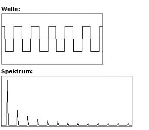 Wir sehen: Symmetrische Wellenformen haben nur ungerade Teiltöne (in jede Periode passen immer genau zwei Perioden des nächsten ungeraden Teiltons, sie sind darin also symmetrisch), während unsymmetrische immer auch gerade Teiltöne haben.