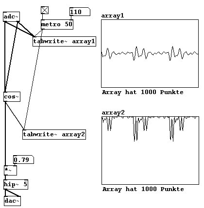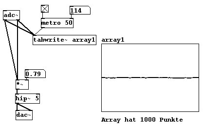 Mit dem folgenden Patch ist es möglich, Wellenformen mit dem Mikrofon aufzunehmen und so beispielsweise Wellenformen zu singen.