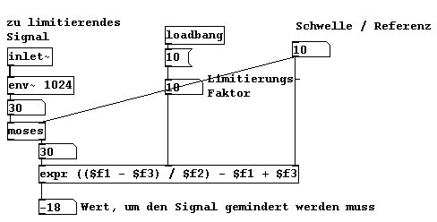 Wie wir unter 3.1.2.1.2 erfahren haben, kann die Lautsprechermembran nur bis zu einer gewissen Grenze schwingen, danach wird die Welle abgeschnitten („geclipped“). Wir können nun einen Automatismus bauen, der zu laute Signale rechtzeitig abdämpft. Ein solches Gerät wird in der Tontechnik als Limiter bezeichnet.