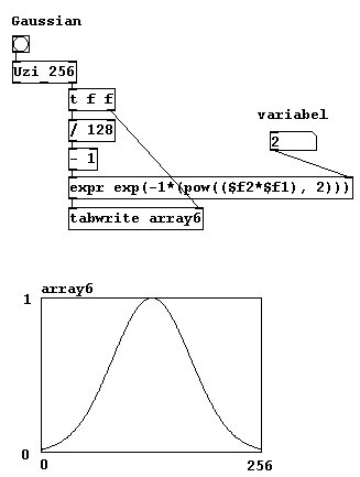 Schließt man den Mikrofoninput an den Lautsprecher an, also den „adc~“-Output direkt an den „dac~“und hält dann das Mikrofon an den Lautsprecher, erklingt bald ein Ton (dann schnell das Mikrofon wegnehmen!). Dies liegt daran, dass die Luft immer etwas rauscht, dieses Rauschen dann vom Mikrofon zum Lautsprecher gelangt, aus dem Lautsprecher ins Mikrofon etc. Dabei wird, abhängig vom Abstand zwischen Mikrofon und Lautsprecher, das Signal bei jedem Durchlauf etwas verstärkt. So kommt es dann, je nach Raum, Kabellänge und Latenz im Computer zu verschieden hohen periodischen Tönen, auch „Larsen Tones“ genannt. Zugleich nimmt die Lautstärke sehr schnell extrem zu, da ja ständig weiter verstärkt wird. Das ist der klassische Fall der Rückkopplung, ein Kreislauf, ein rekursives System. Wo immer man mit Mikrofonen und Verstärkung zu tun hat, ist man mit der Gefahr von Rückkopplungen konfrontiert. Dem kann beispielsweise ein dazwischengeschalteter Limiter entgegenwirken.