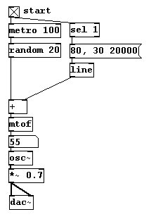 Dies in Pd zu programmieren ist ziemlich einfach: