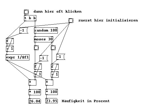 In Prozent ausgedrückt liegt hier die Wahrscheinlichkeit, dass links ein Bang kommt, bei 30 Prozent und dass rechts einer kommt, bei 70 Prozent. Wir können das tatsächliche Aufkommen feststellen: