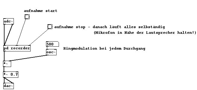 Im nächsten Beispiel arbeiten wir auch mit Veränderung und Wieder-Aufnahme. Eine rekursive Ringmodulation: